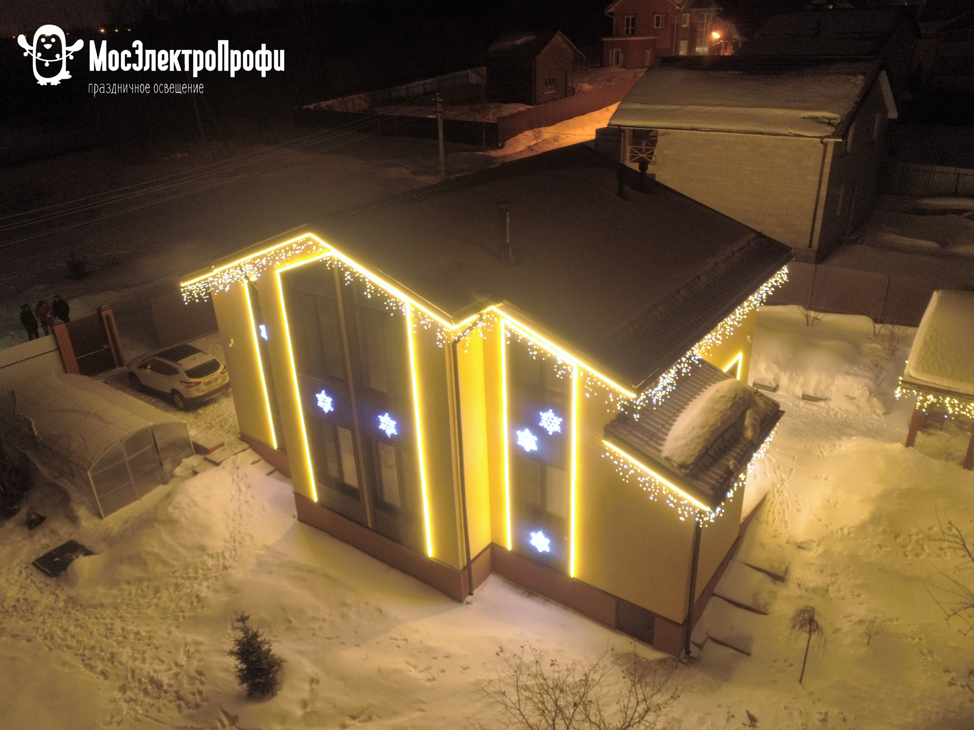 Применяется при оформлении контура крыши домов, навесов, гаражей и других строений. Используется в паре с аллюминевым профилем. - Светодиодный гирлянда занавес