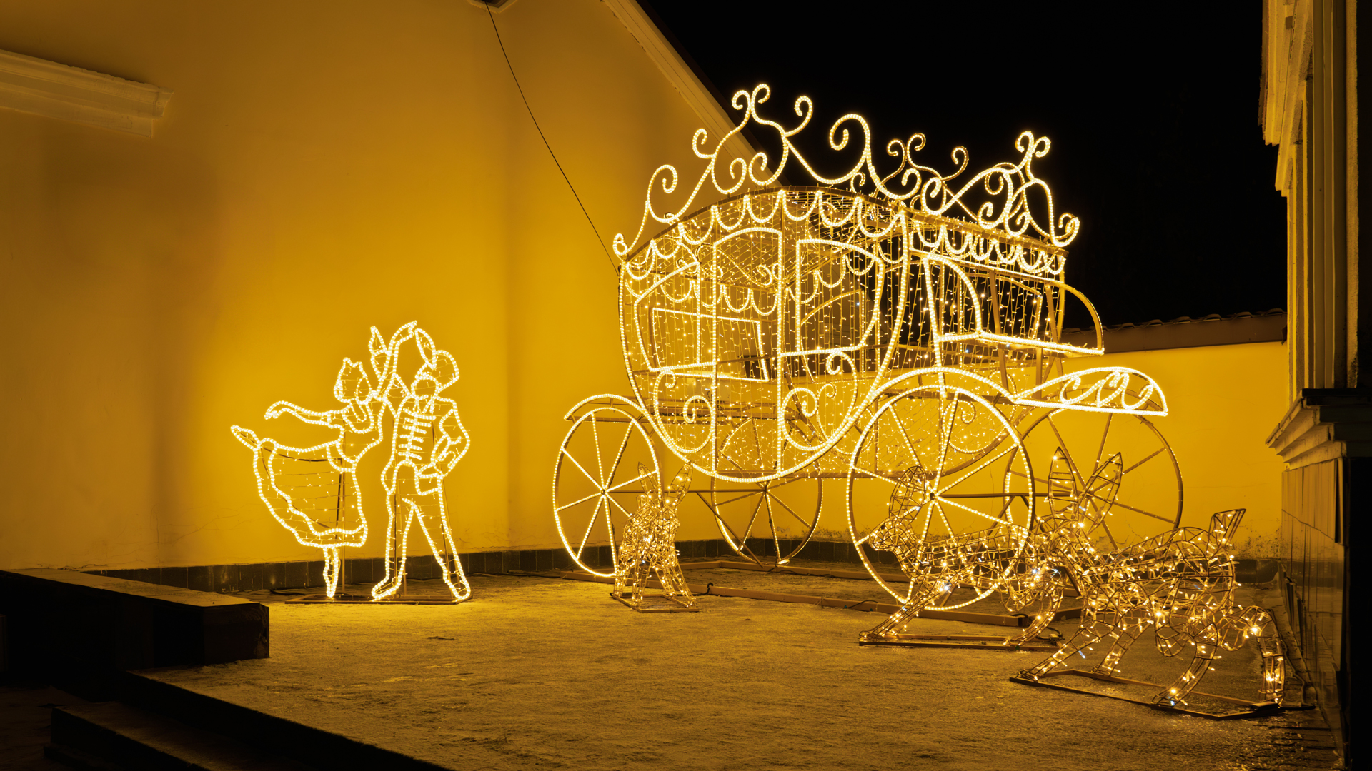 Светодиодная конструкция "Карета". Светодиодная фигура "Танцующая пара". Светодиодные фигуры "Зайцы".