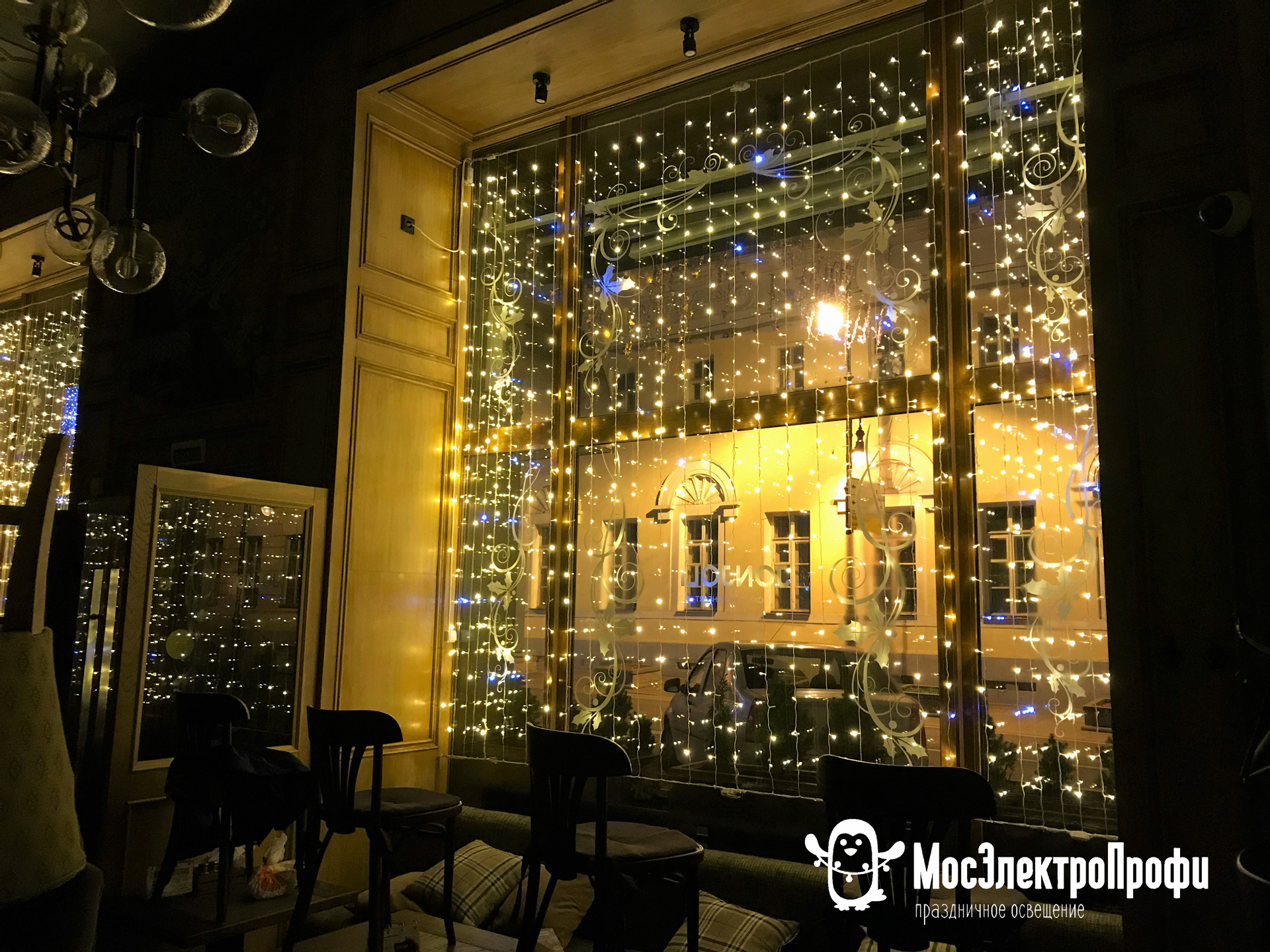 Оформление окон светодиодным занавесом.